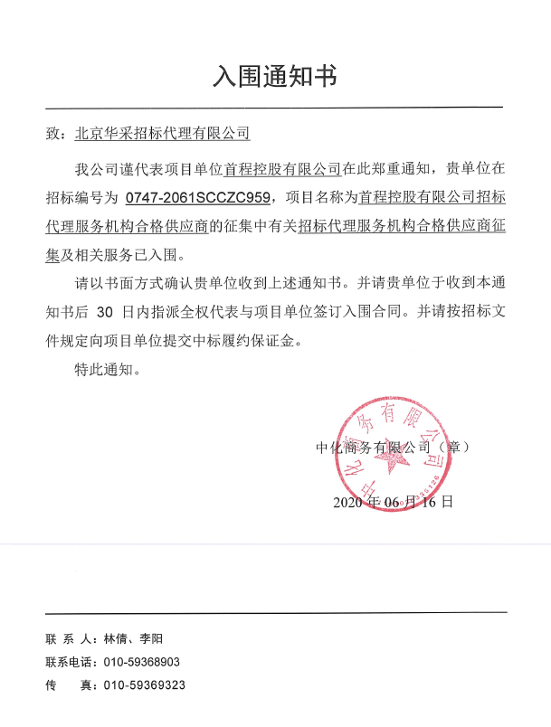 北京星空线上平台(集团)官方网站招标代理有限公司成功入围首程控股有限公司招标代理机构